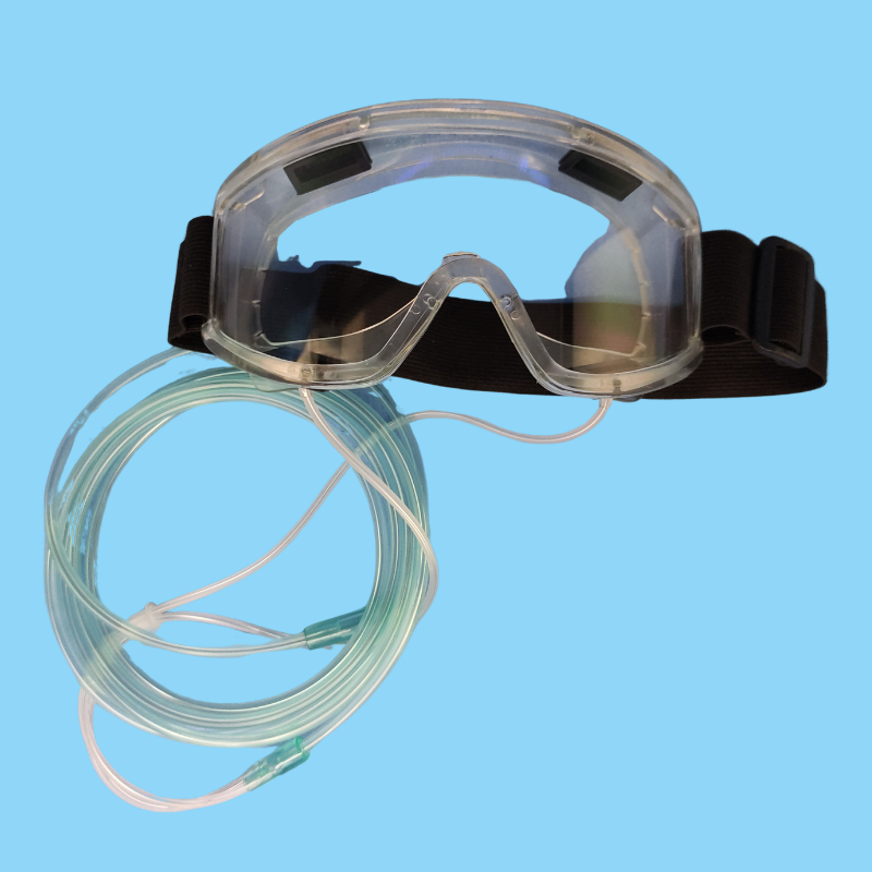 Nosso óculos utiliza engate simples para encaixe da mangueira de silicone 6mm externo por 4mm interno.